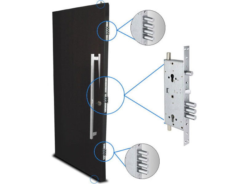 – Possui 4 bolts em aço maciço no sistema de travamento central, 4 em cada sistema auxiliar e 2 varetas para travamento vertical.